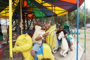I lördags fick vi möjligheten att bjuda Bethesdapojkarna på ett heldagsbesök på Kivu Resort, ett hotell med poolområde och aktivitetspark. Vilken lyckad dag det blev! Vi var lite oroliga inför besöket eftersom väderprognosen, som sedan vi kom till Kenya har legat på stadiga 27/28 grader varje dag, utlovade 22 grader och regn hela dagen. Men Gud är god och hör bön, och dagen blev fantastisk ändå! Lite duggregn under förmiddagen hindrar inga pojkar när området bjuder på karusell, rutchkana, fotboll, hoppborg och cyklar. Inte minst det sistnämnda var en stor hit och många av pojkarna lärde sig faktiskt cykla under dagen. På grund av vädret blev det inga långa timmar i vattnet men killarna fick doppa av sig innan lunch och längtade sedan tillbaka till cyklarna framåt eftermiddagen. Dagen blev helt enkelt en perfekt avslutning innan vi skulle vara lediga en veckan.