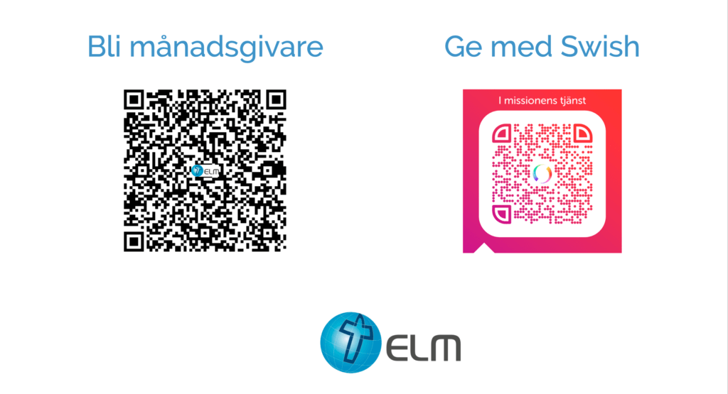Stå med i bön och givande. Missionen är i första hands Guds sak och i andra hand vår gemensamma sak. ELM är inte en styrelse eller några tjänstemän utan var och en av oss – tillsammans. Och det är tillsammans vi får möta utmaningarna och glädjeämnena, i bön om Guds hjälp och ledning.