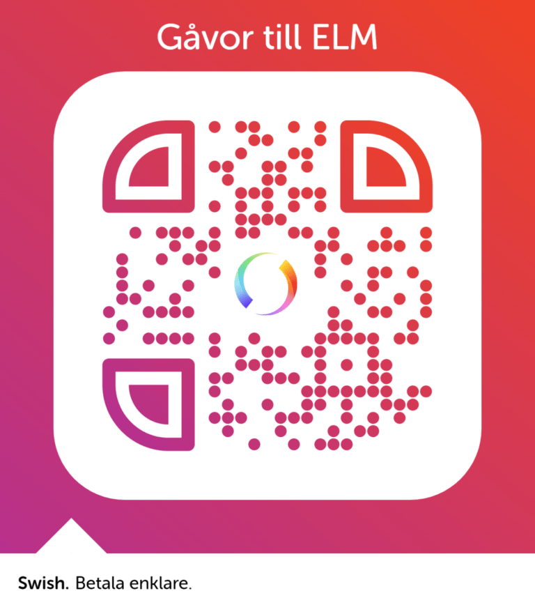 Med swish kan du ge enskilda gåvor. Lägg in ELM som mottagare eller skanna QR-koden och lägg in en betalning med valfritt belopp.