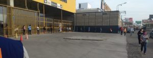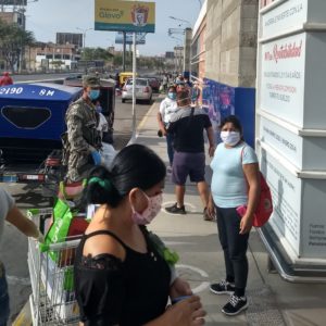 Här nedan några foton från senaste handling på stormarknaden Tottus. På väg in till centrum desinfekteras alla bilar utvändigt.