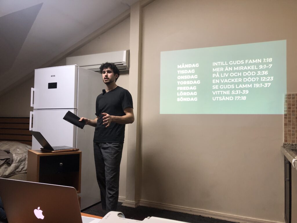 Ikväll har vi fått fantastisk undervisning av Johannes (Heule) om Johannes (lärjungen). Temat för kvällen var “Intill Guds famn”. Vi har blivit påminda om att även vi, liksom Johannes, får vila i Guds trygga famn och vid hans hjärta. Även vi får kalla oss “den lärjunge Jesus älskade”. Hans kärleksfulla hjärta slår både för oss och för alla människor vi mött idag och som nåtts av de många böneutropen under dagen. Tänk om det istället kunde vara det härliga evangeliet om Jesus Kristus och hans kärlek och nåd som fick ljuda vida omkring genom högtalarna i denna vackra miljonstad…..
