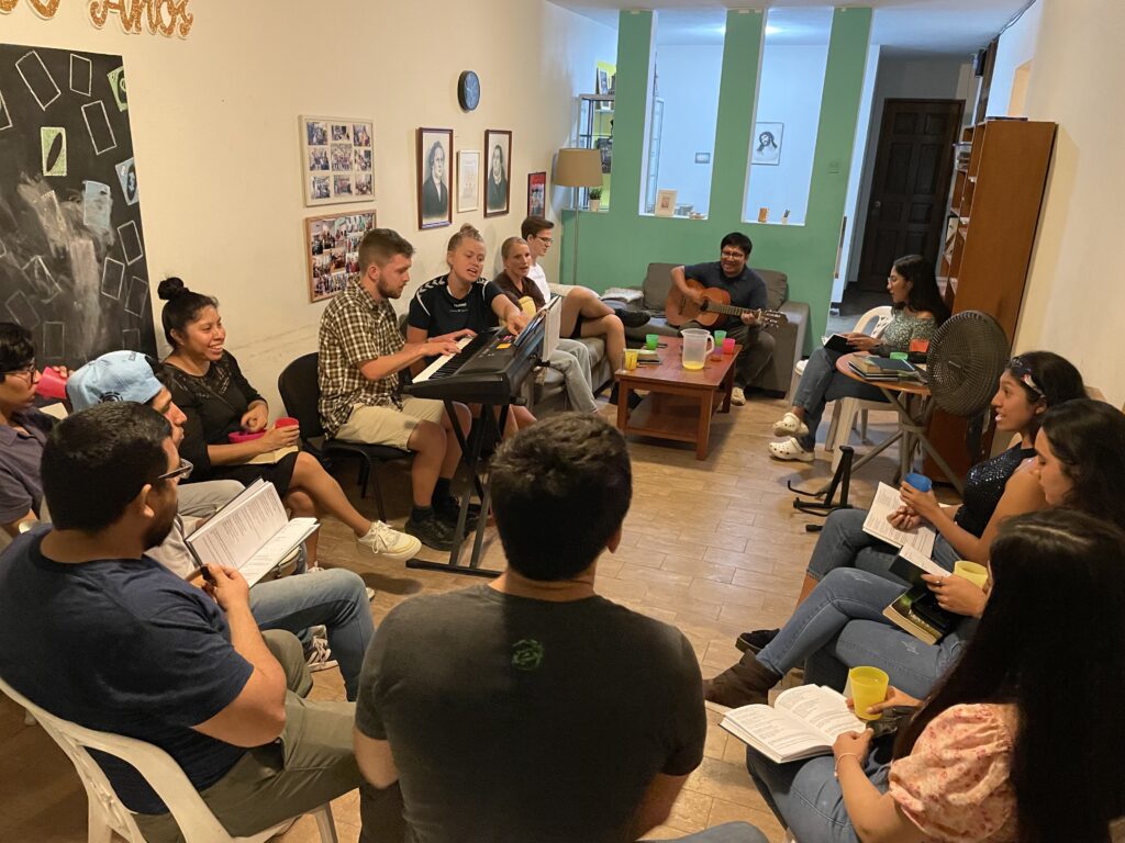 I onsdags kväll fick jag vara med då studentgruppen träffades i ELMs lokaler i Chiclayo centrum. Jag såg flera nya ansikten vilket var glädjande. Kyrkans unga är frimodiga att bjuda med sig sina kompisar till studentgruppen. Miriam hade en andakt och så sjöng vi tillsammans. Många peruaner tycker om att sjunga så vi hann nog med närmare 20 sånger innan det var dags för aktiviteter. Denna vecka lekte vi den klassiska leken: “Fyra man i soffan” som de lärt sig av några tidigare volontärer. Många som är nya i studentgruppen beskriver att de möter en varm och genuin gemenskap där – och det känner man verkligen när man är där.