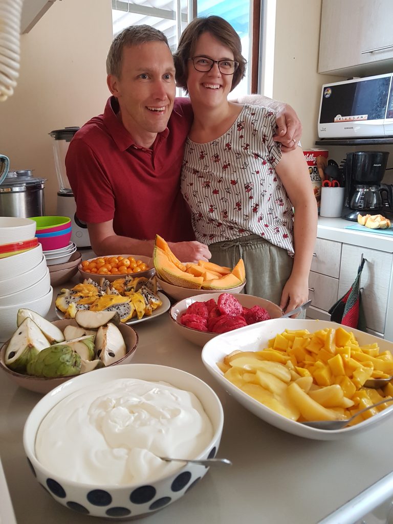 Roligast för flera av oss är nog ändå att få träffa Hjalmar och Lisa igen, här i Chiclayo. Det är något speciellt med att komma hem till vänner och få ta del av deras liv här. Förutom att bjuda oss på en riktigt god lunch så introducerade de oss till frukter vi sällan stöter på hemma i Sverige.