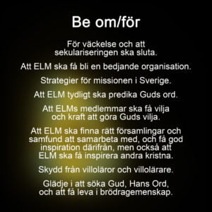 och att be om väckelse och vägledning för ELMs Sverigemission.